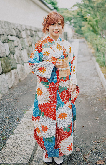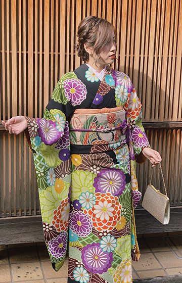 振袖は他の着物と比べ袖が長く、一番豪華に見える着物です。古典柄から現代風まで華やかな柄をご用意しております。華麗に装って の観光をお楽しみ下さい。