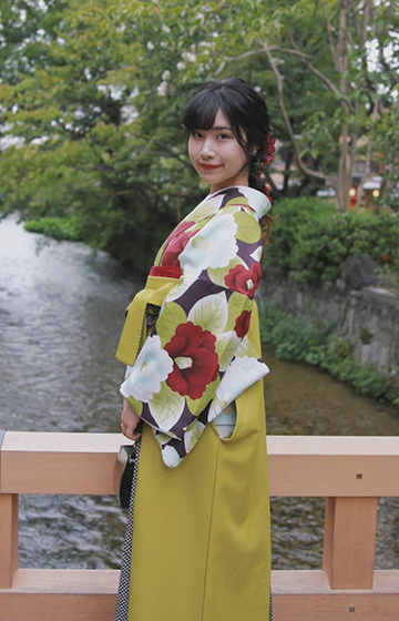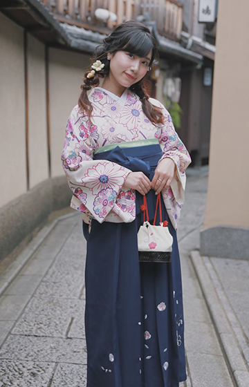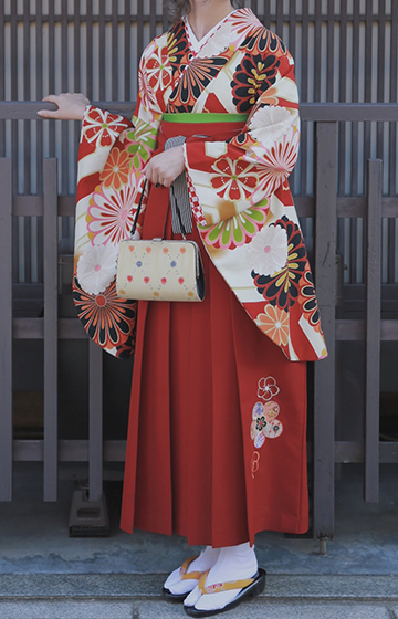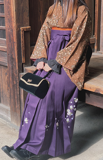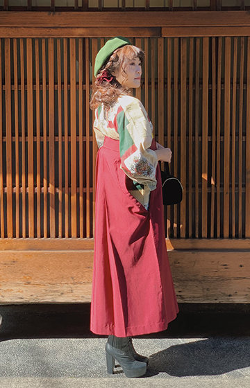 まわりと差をつけたい方にオススメの袴プラン。ブーツも合わせやすくプリーツスカートのような形状なので歩きやすく観光に最適です。※ブーツはご持参下さい。