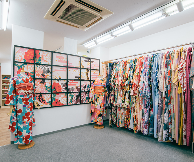 観光スポットで大人気の”浅草”駅からも徒歩5分と好立地で、大変便利です。人で賑わう浅草の様にポップでどこか落ち着きのある店内をイメージし、150着以上ある中か らお選び頂いたお着物を、スタッフ一同、丁寧に想いを込めてお着付けさせて頂きます。普段なかなか着る事のない着物を着て、素敵な旅の思い出をfirst浅草店で作りませんか??お客様にあったお着物から、ヘアスタイルまでひとつしかないコーディネートを提案いたします!!