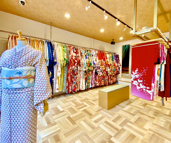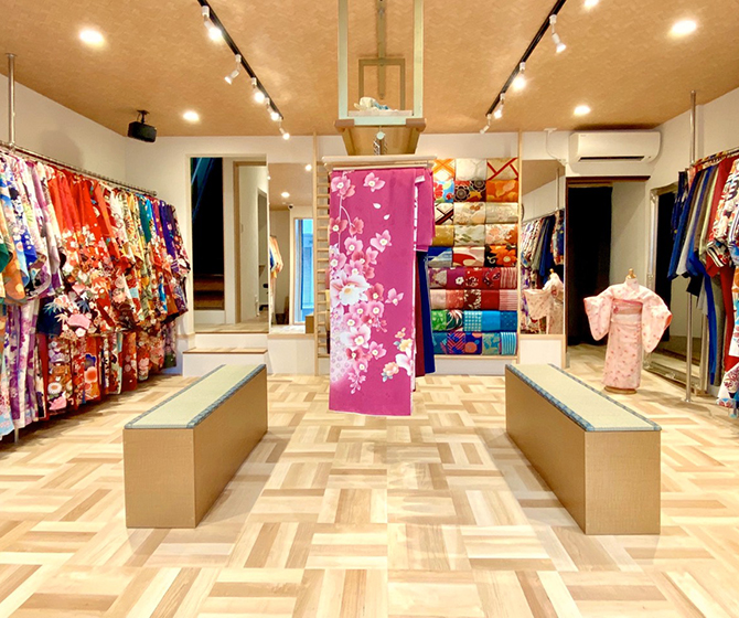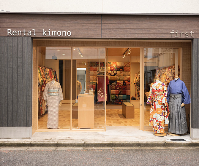 近鉄奈良駅から徒歩3分。奈良公園、興福寺、東大寺、浮見堂などへも程近い、ゆったり落ち着いた花芝商店街の中にございます。奈良の町屋を残しながら、ナチュラルテイストの広々とした店内で、奈良を素敵に楽しむお支度をして頂けます。お着物は全て高品質のブランド着物でカジュアル可愛い小紋から古典柄のアンティーク、高級振袖など幅広くご用意。お着物大好きなスタッフがあなたを可愛く素敵にプロデュース!奈良に来たらfirstに行くシカない!最高の想い出作りのお手伝いを私たちにお任せ下さい。